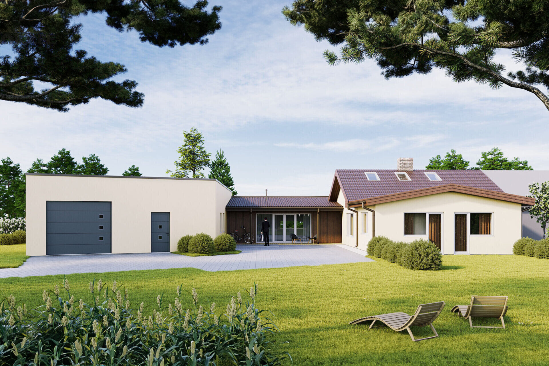 Olemasolev elamu ja garaaž ühendatakse uue hooneosaga terviklikuks ja kaasaegseks üksikelamuks.