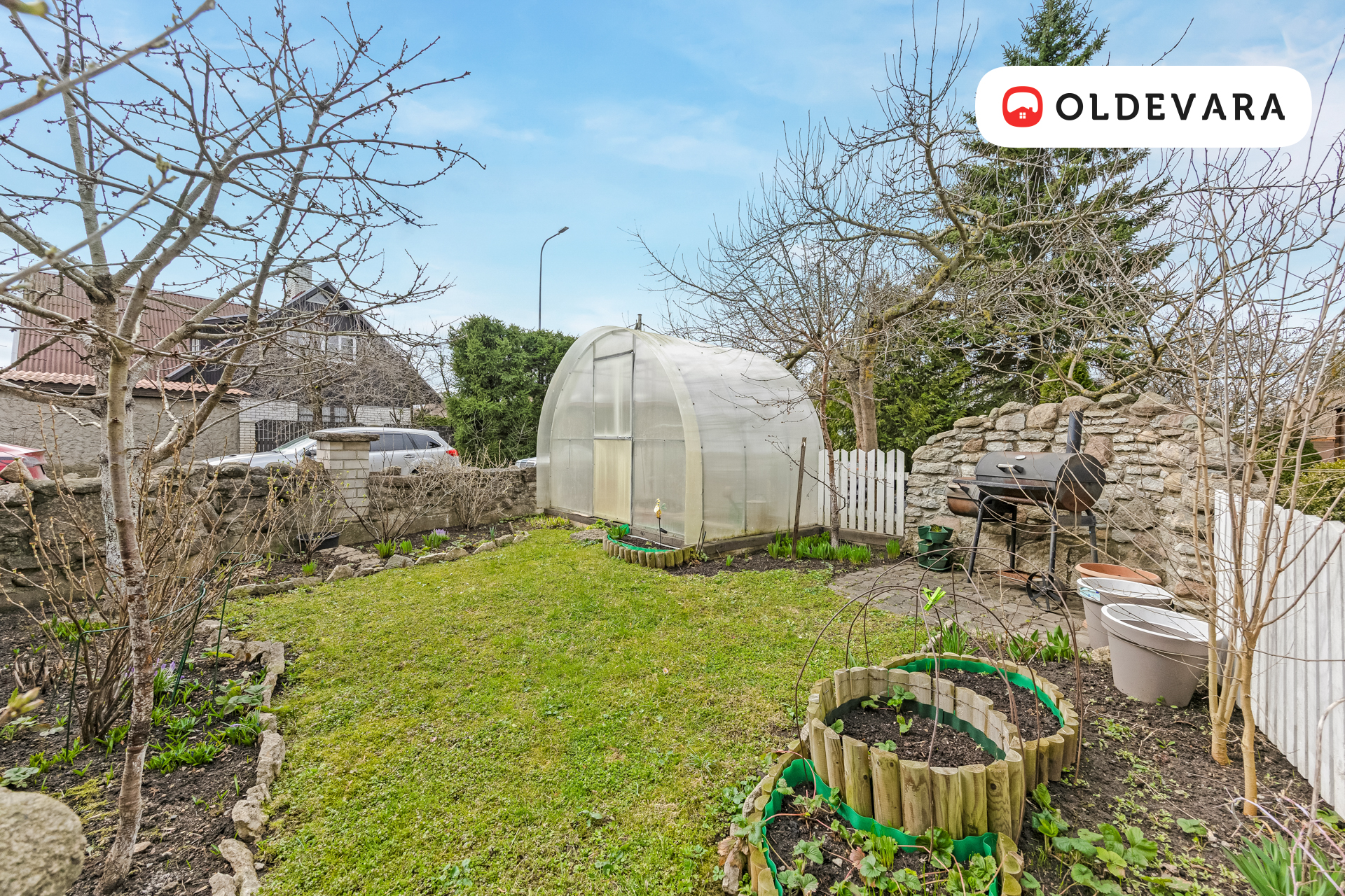 Maja ees asuvad parkimiskohad kahele autole, garaaž ning hubane õueala koos võimalusega grillida ja kasvatada taimi kasvuhoones.