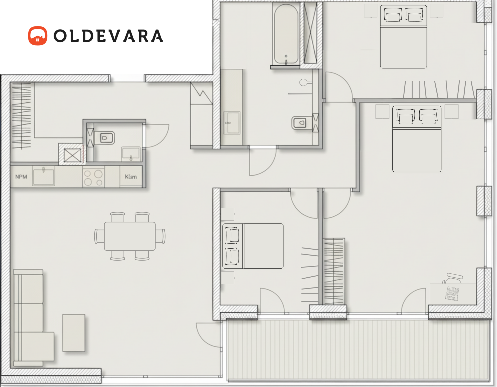 • 3 magamistuba, millest kahest pääseb rõdule